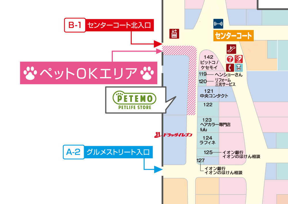 ※上記以外の一般入口からのペット同伴のご入出はご遠慮ください。